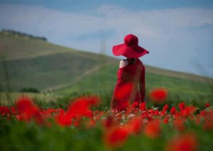 80 évesen: Nem nyűglődik a tükörrel. Csak felteszi a bíbor kalapját és megy, hogy nevessen a világgal együtt.